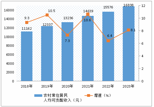 圖15 ?2018年—2023年農(nóng)村常住居民人均可支配收入