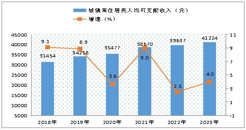 圖14 ?2018年—2023年城鎮(zhèn)常住居民人均可支配收入