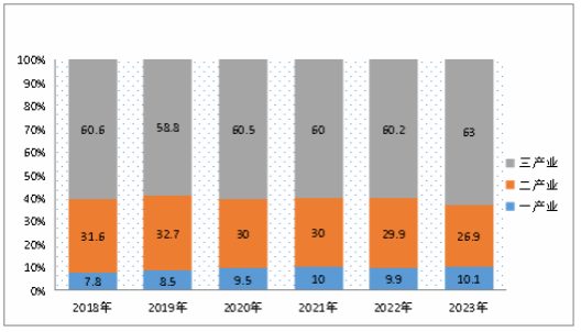 圖2 ?2018年—2023年三次產(chǎn)業(yè)增加值占GDP比重