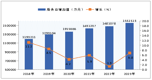 圖9 ? 2018年—2023年服務(wù)業(yè)增加值及增長速度
