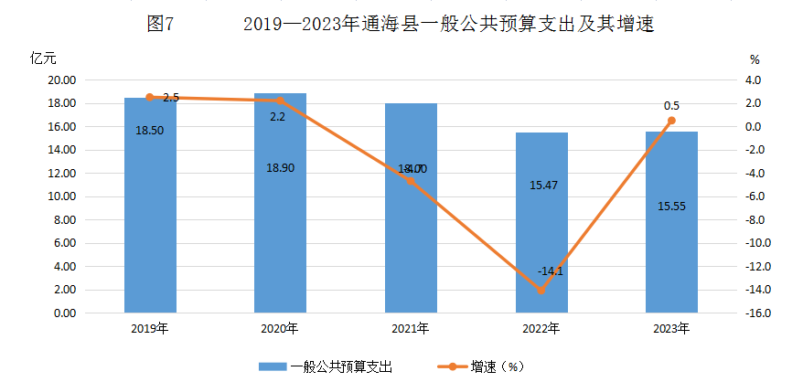 全年地方財政總支出191435萬元,減12.1%。一般公共預(yù)算支出155504萬元,增長0.5%,其中:一般公共服務(wù)支出15232萬元,減3.6%;教育支出39768萬元,與上年持平;社會保障和就業(yè)支出33332萬元,增長16.4%;衛(wèi)生健康支出18818萬元,增14.5%;農(nóng)林水支出18012萬元,增長12.3%。