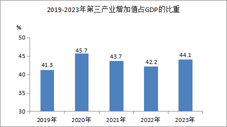 在第三產(chǎn)業(yè)中,交通運輸、倉儲和郵政業(yè)增加值占比5.1%,金融業(yè)增加值占比13.1%,批發(fā)和零售業(yè)增加值占比8.4%,住宿和餐飲業(yè)增加值占比3.9%,房地產(chǎn)業(yè)增加值占比19.3%,其他服務(wù)業(yè)增加值占比46.6%。