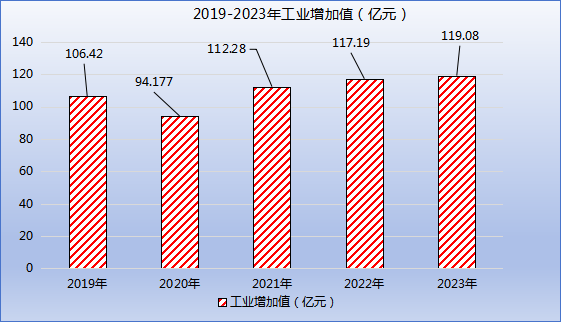 2019-2023年工業(yè)增加值(億元)