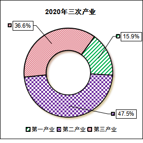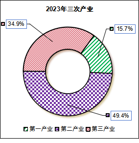 根據(jù)市(縣)生產(chǎn)總值統(tǒng)一核算結(jié)果,2023年三原縣實現(xiàn)地區(qū)生產(chǎn)總值249.45億元,按可比價格計算,同比增長5.1%。分產(chǎn)業(yè)看,第一產(chǎn)業(yè)增加值39.08億元,增長0.6%;第二產(chǎn)業(yè)增加值123.35億元,增長3.6%;第三產(chǎn)業(yè)增加值87.02億元,增長0.9%。三次產(chǎn)業(yè)占比:15.7:49.4:34.9,與“十三五”末(2020年)的15.9:47.5:36.6相比,一產(chǎn)下降了0.2個百分點,二產(chǎn)上揚(yáng)了1.9個百分點,三產(chǎn)下調(diào)了1.7個百分點。(見2023年與“十三五”末(2020年)三次產(chǎn)業(yè)結(jié)構(gòu)對比圖一、圖二)。2023年,全縣非公有制經(jīng)濟(jì)增加值完成150.13億元,非公有制經(jīng)濟(jì)增加值占GDP比重為60.2%;單位GDP能耗降低率為 -16.66%;全年新增市場主體4255戶,較上年增長15.6%。