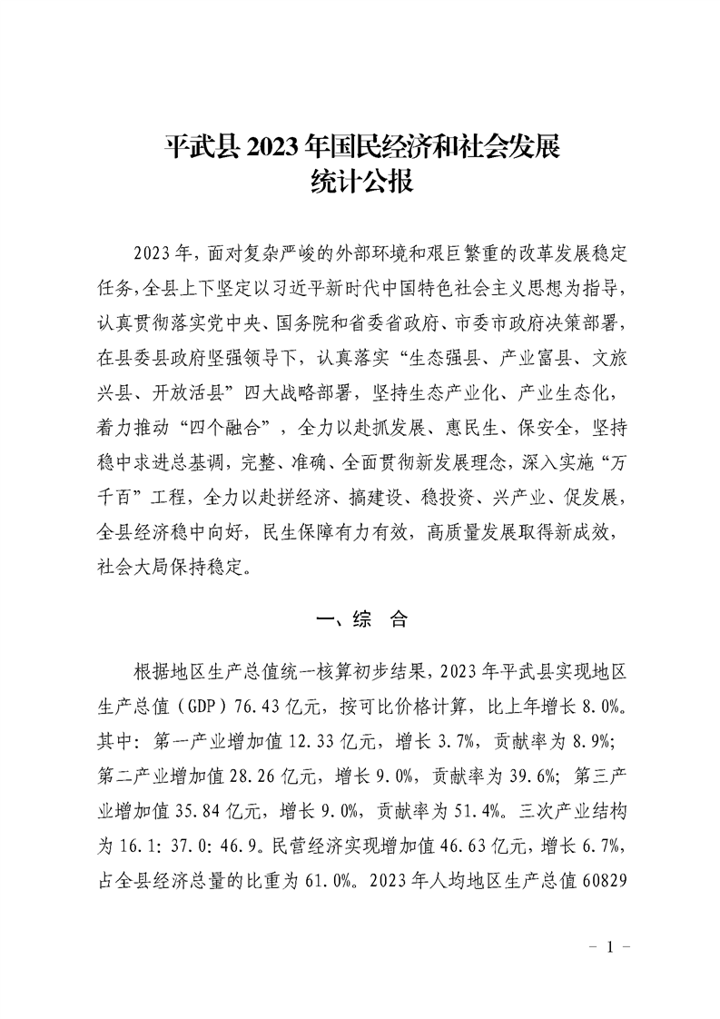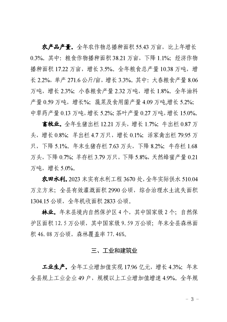 (四川?。?023年綿陽市平武縣國(guó)民經(jīng)濟(jì)和社會(huì)發(fā)展統(tǒng)計(jì)公報(bào)