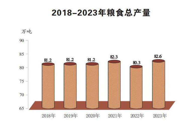 糧食?全年農(nóng)作物播種面積327.8萬畝,比上年增長1.1%,其中:糧食作物播種面積218.1萬畝,下降1.3%。全年糧食產(chǎn)量82.6萬噸,增長2.8%,其中:小春糧食產(chǎn)量15.4萬噸,增長4.2%;大春糧食產(chǎn)量67.2萬噸,增長2.5%。稻谷產(chǎn)量22.5萬噸,下降0.3%;小麥產(chǎn)量13.1萬噸,增長5.0%;油料作物產(chǎn)量14.8萬噸,增長2.2%,其中:油菜籽產(chǎn)量11.1萬噸,增長0.2%;蔬菜及食用菌總產(chǎn)量53.0萬噸,增長6.1%。