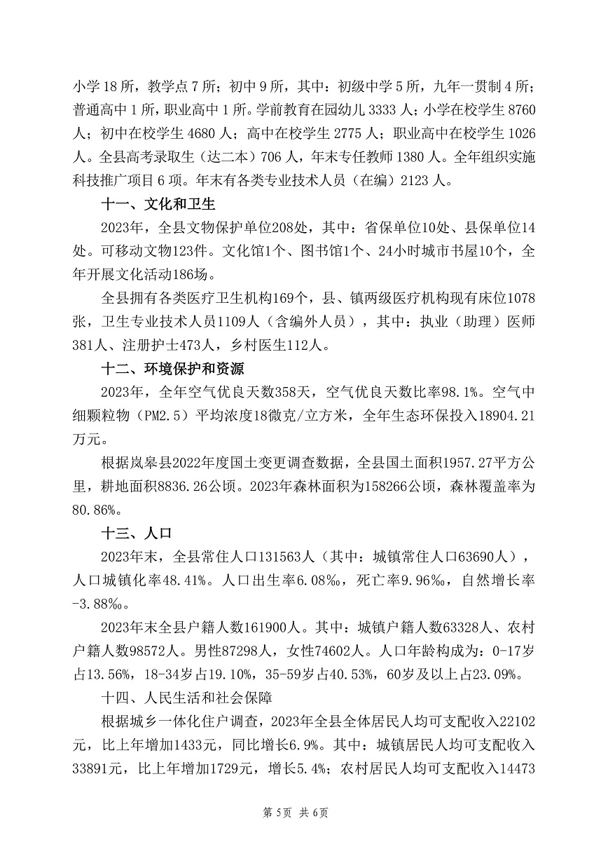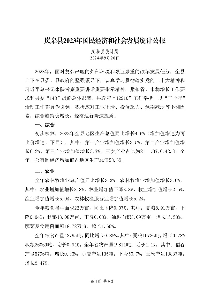 (陜西?。?023年安康市嵐皋縣國民經(jīng)濟和社會發(fā)展統(tǒng)計公報