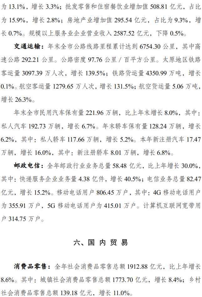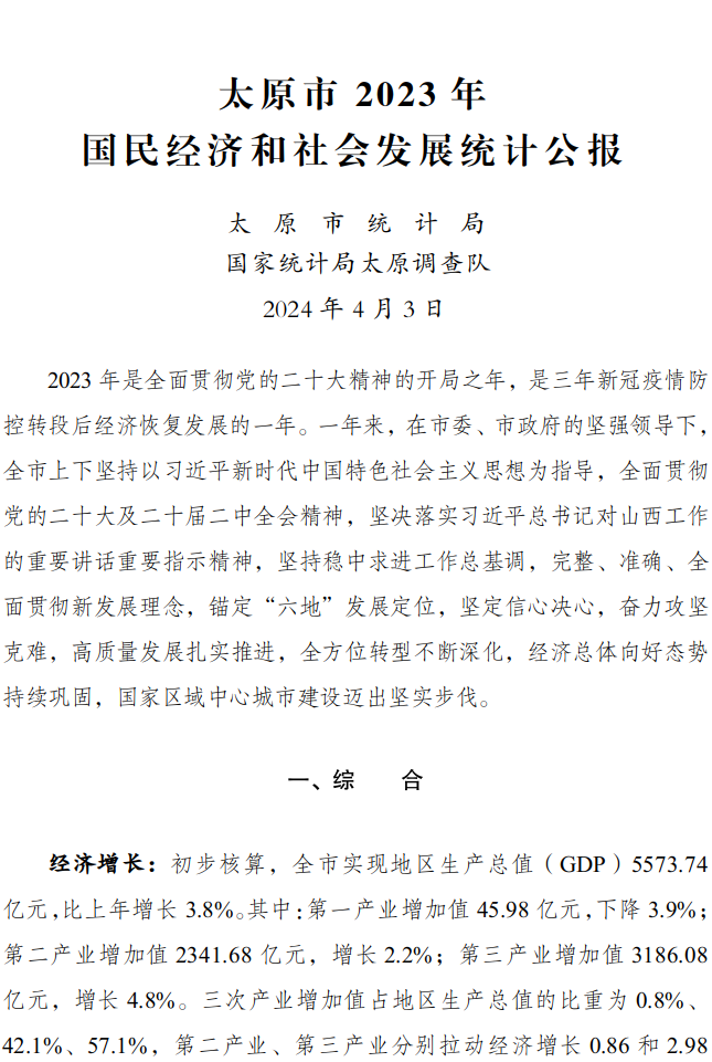 (山西?。?023年太原市國(guó)民經(jīng)濟(jì)和社會(huì)發(fā)展統(tǒng)計(jì)公報(bào)