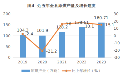 全年規(guī)模以上工業(yè)比上年同比增長30.9%。實現(xiàn)營業(yè)收入550473.4萬元,利潤總額275443.3萬元。生產(chǎn)原煤160.71萬噸,比上年增長15.1%。生產(chǎn)洗精煤86.08萬噸,開采天然氣195543.54萬立方米,全年發(fā)電量20178.59萬千瓦時。