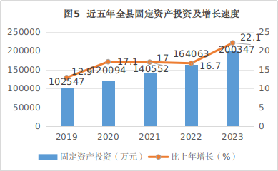 全縣全社會固定資產(chǎn)投資200347萬元,同比增長22.1%。其中,一產(chǎn)投資完成31536萬元,同比增長263.3%。全縣共有開工項目61個,比上年增加19個。其中,結轉(zhuǎn)項目18個,本年新開工項目43個;投資在500到5000萬元以下項目50個,5000萬元及以上到億元以下項目4個,億元以上項目7個。