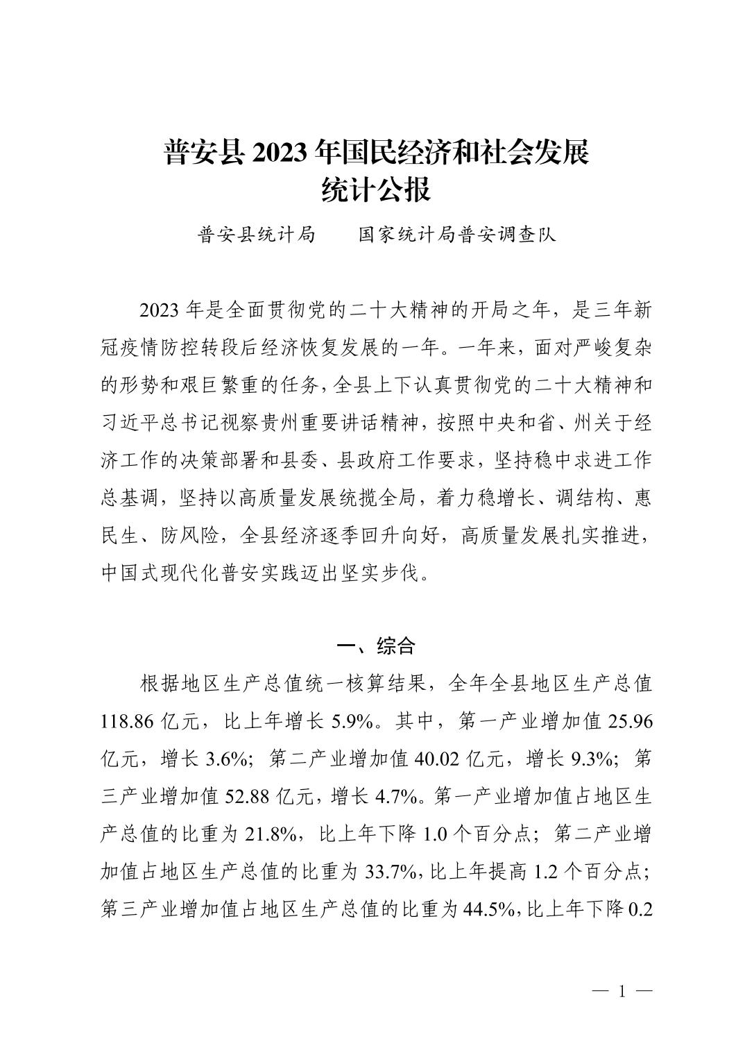 (貴州省)2023年黔西南布依族苗族自治州普安縣國民經(jīng)濟和社會發(fā)展統(tǒng)計公報