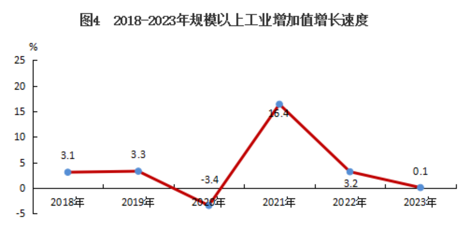 規(guī)模以上工業(yè)中,從輕重工業(yè)看,輕工業(yè)增加值比上年下降18.9%,重工業(yè)增加值增長(zhǎng)5.0%