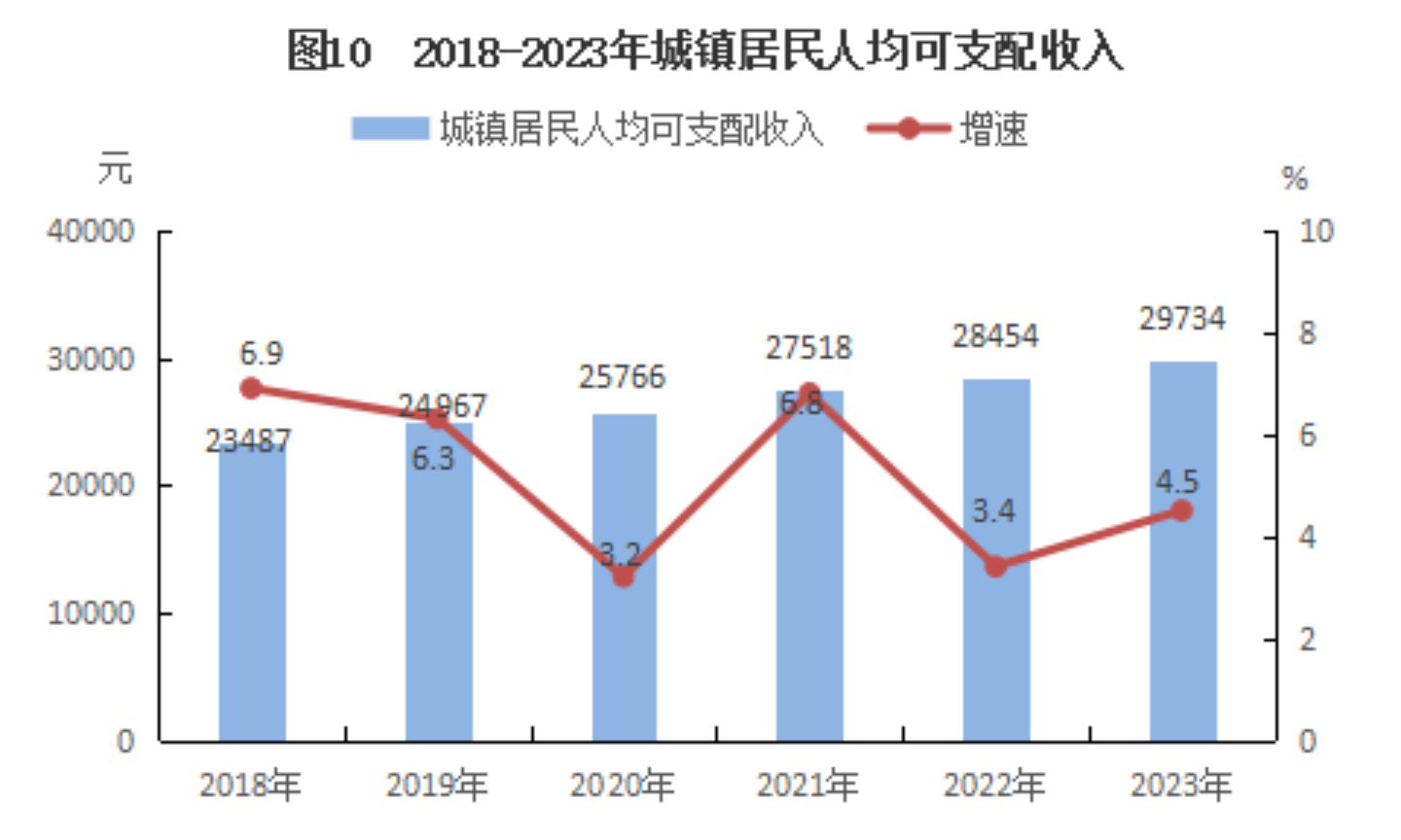 全年城鎮(zhèn)居民人均可支配收入29734元,增長(zhǎng)4.5%(名義增長(zhǎng),下同);農(nóng)村居民人均可支配收入18151元,增長(zhǎng)7.5%,全年全縣居民人均消費(fèi)22035元,增長(zhǎng)6.1%。