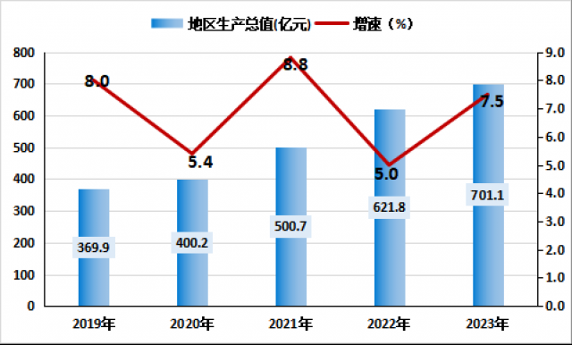 經(jīng)達(dá)州市統(tǒng)計(jì)局審定,2023年宣漢縣地區(qū)生產(chǎn)總值(GDP)7011191萬元,按可比價(jià)格計(jì)算,比上年增長7.5%。其中,第一產(chǎn)業(yè)增加值1066741萬元,比上年增長3.2%;第二產(chǎn)業(yè)增加值3520520萬元,增長9.3%;第三產(chǎn)業(yè)增加值2423930萬元,增長7.3%。三次產(chǎn)業(yè)結(jié)構(gòu)由2022年的16.8:49.2:34.0調(diào)整為15.2:50.2:34.6,二產(chǎn)業(yè)占比提高了1個(gè)百分點(diǎn)。全年最終消費(fèi)支出拉動(dòng)國內(nèi)生產(chǎn)總值增長2.5個(gè)百分點(diǎn),資本形成總額拉動(dòng)國內(nèi)生產(chǎn)總值增長4.9個(gè)百分點(diǎn),貨物和服務(wù)凈出口拉動(dòng)國內(nèi)生產(chǎn)總值增長0.1個(gè)百分點(diǎn)。全年人均國內(nèi)生產(chǎn)總值73934元,比上年增長7.7%。