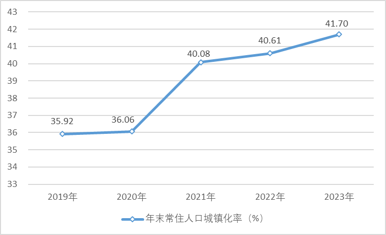 圖6 2019-2023年儀隴縣年末常住人口城鎮(zhèn)化率