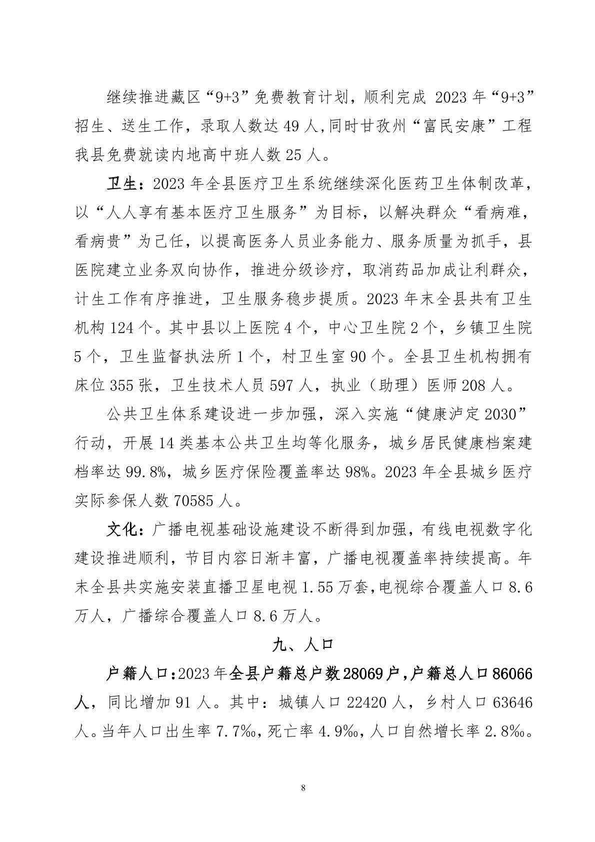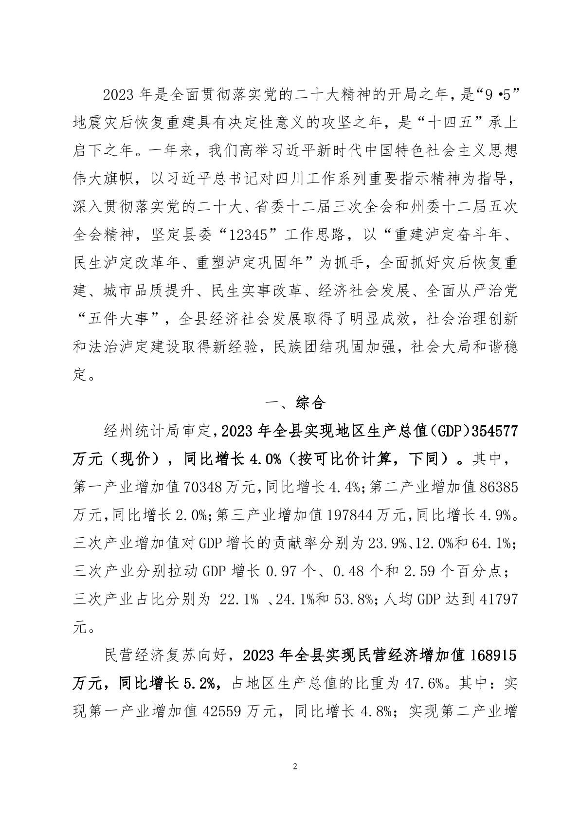 2023年甘孜藏族自治州瀘定縣人民政府國民經濟和社會發(fā)展統(tǒng)計公報(2025年更新)