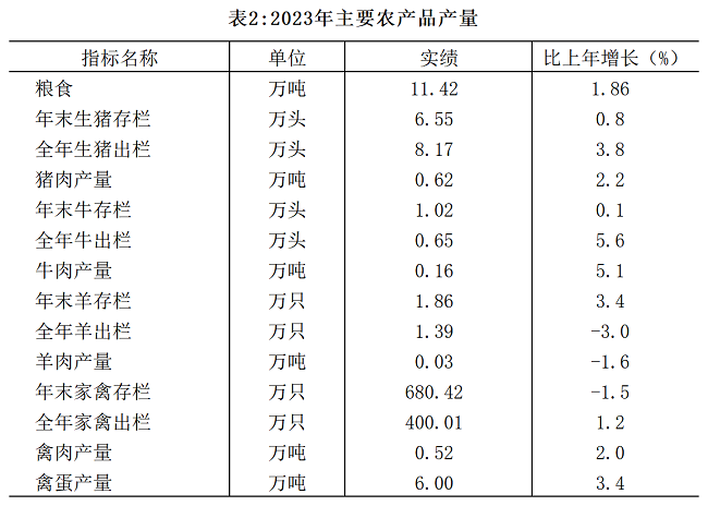 全年生豬存欄6.55萬頭,同比增長0.8%;生豬出欄8.17萬頭,同比增長3.8%。年末牛存欄1.02萬頭,同比增長0.1%;牛肉產(chǎn)量0.16萬噸,同比增長5.1%。年末家禽存欄680.42萬只,同比下降1.5%;家禽出欄400.01萬只,同比增長1.2%;禽蛋產(chǎn)量6.00萬噸,同比增長3.4%。
