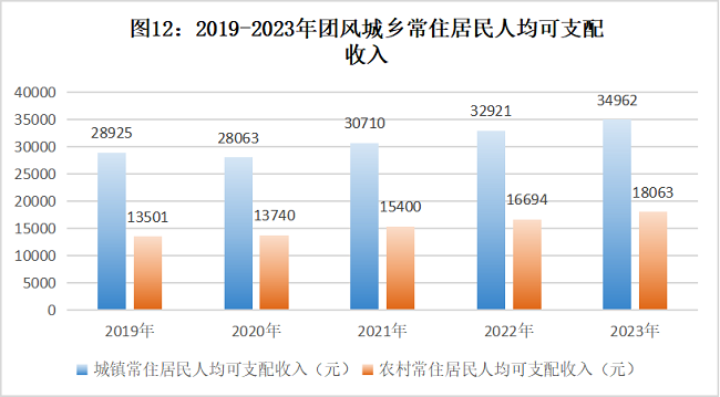全年全縣城鎮(zhèn)常住居民人均可支配收入34962元,同比增長6.2%,其中工資性收入26022元,同比增長5.0%;經(jīng)營凈收入4329元,同比增長9.5%。農(nóng)村常住居民人均可支配收入18063元,同比增長8.2%,其中工資性收入10722元,同比增長6.0%;經(jīng)營凈收入5719元,同比增長11.2%。
