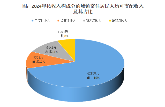 抽樣調查資料顯示,全年全體居民人均可支配收入62656元,同比增長6.1%。全體居民人均消費性支出44109元,同比增長4.8%。城鎮(zhèn)常住居民人均可支配收入達到64365元,同比增長5.6%。其中:工資性收入為45442元,經(jīng)營凈收入為7402元,財產(chǎn)凈收入為7466元,轉移凈收入為4055元。大牛工程師