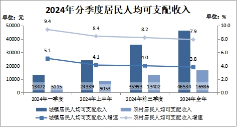 城鎮(zhèn)居民人均可支配收入46534元,同比增長3.8%;農(nóng)村居民人均可支配收入16986元,同比增長7.9%,城鄉(xiāng)居民收入比為2.74:1,比上年縮小0.11。