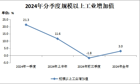 全年工業(yè)增加值同比增長3.4%,其中,規(guī)模以上工業(yè)增加值同比增長3.0%。規(guī)模以上工業(yè)總產(chǎn)值274.27億元,同比下降1.7%。