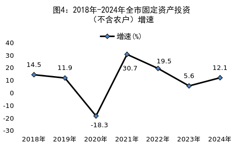 全年固定資產(chǎn)投資(不含農(nóng)戶)比上年增長12.1%(全域口徑)。