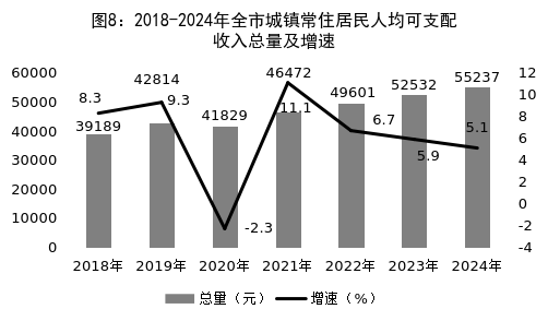 城鄉(xiāng)居民收入穩(wěn)定增長。全年全體居民人均可支配收入45782元,比上年增長5.7%。按常住地分,城鎮(zhèn)常住居民人均可支配收入55237元,比上年增長5.1%;農(nóng)村常住居民人均可支配收入30722元,比上年增長6.6%。