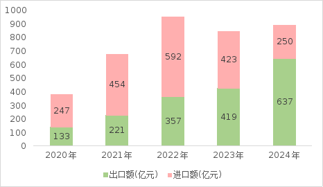 圖2??2020年—2024年貨物進(jìn)出口總額大牛工程師