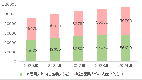????全區(qū)居民人均可支配收入56619元,比上年增長3.2%。按常住地分,城鎮(zhèn)居民人均可支配收入56765元,增長3.2%。2024年重慶市江北區(qū)人民政府國民經(jīng)濟和社會發(fā)展統(tǒng)計公報(2025年更新)
