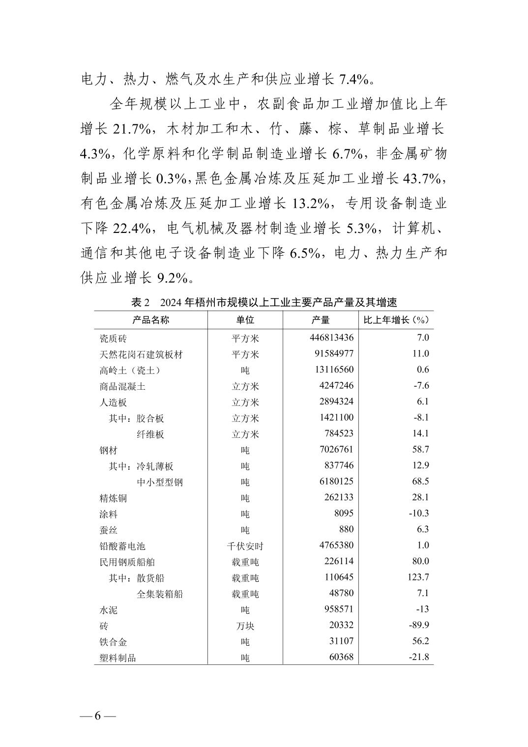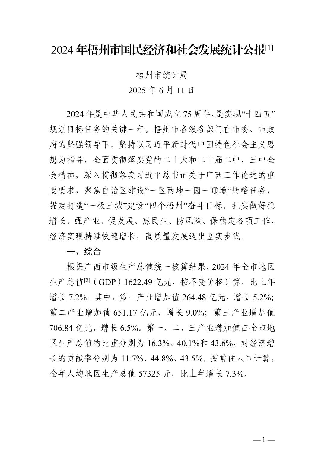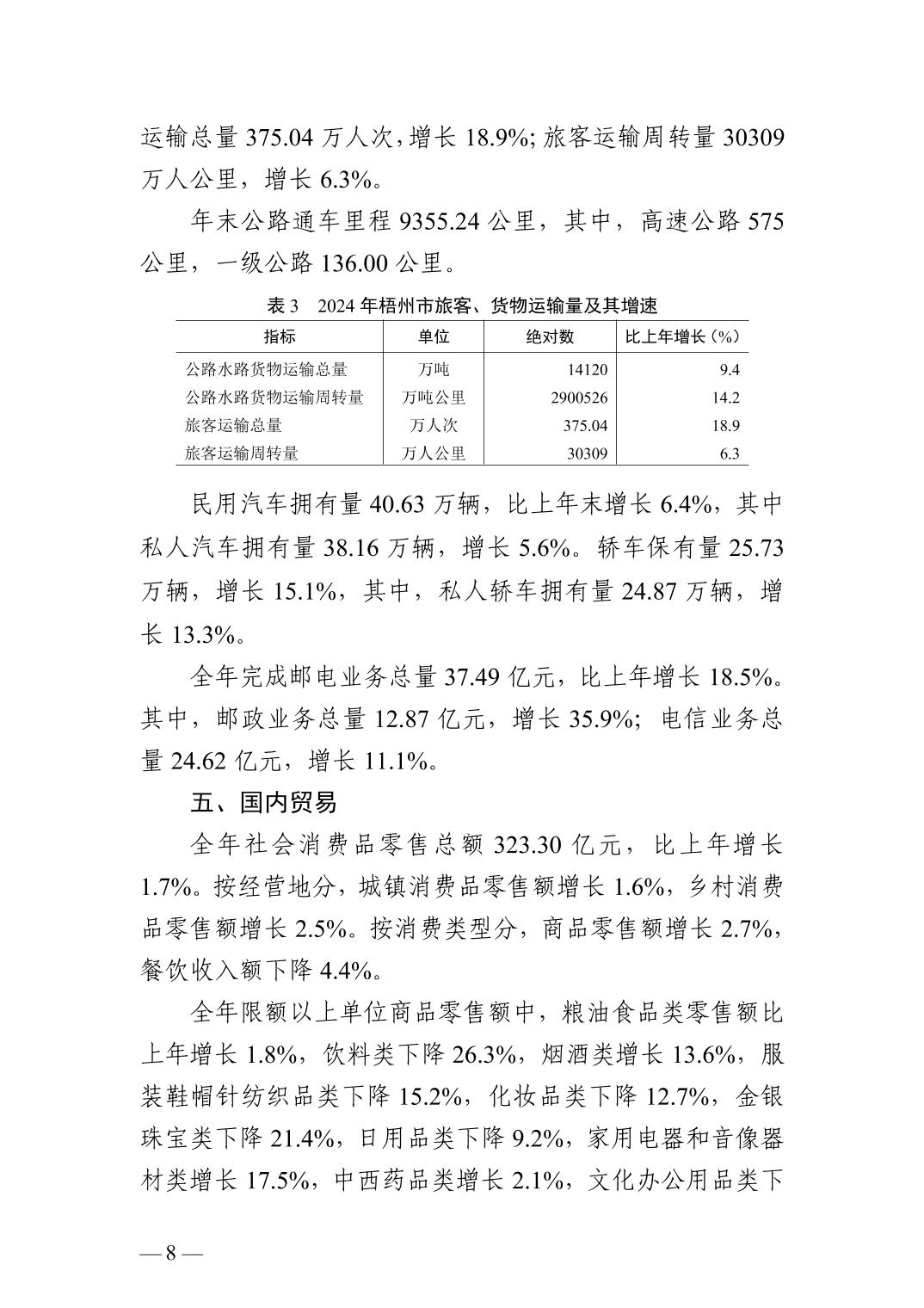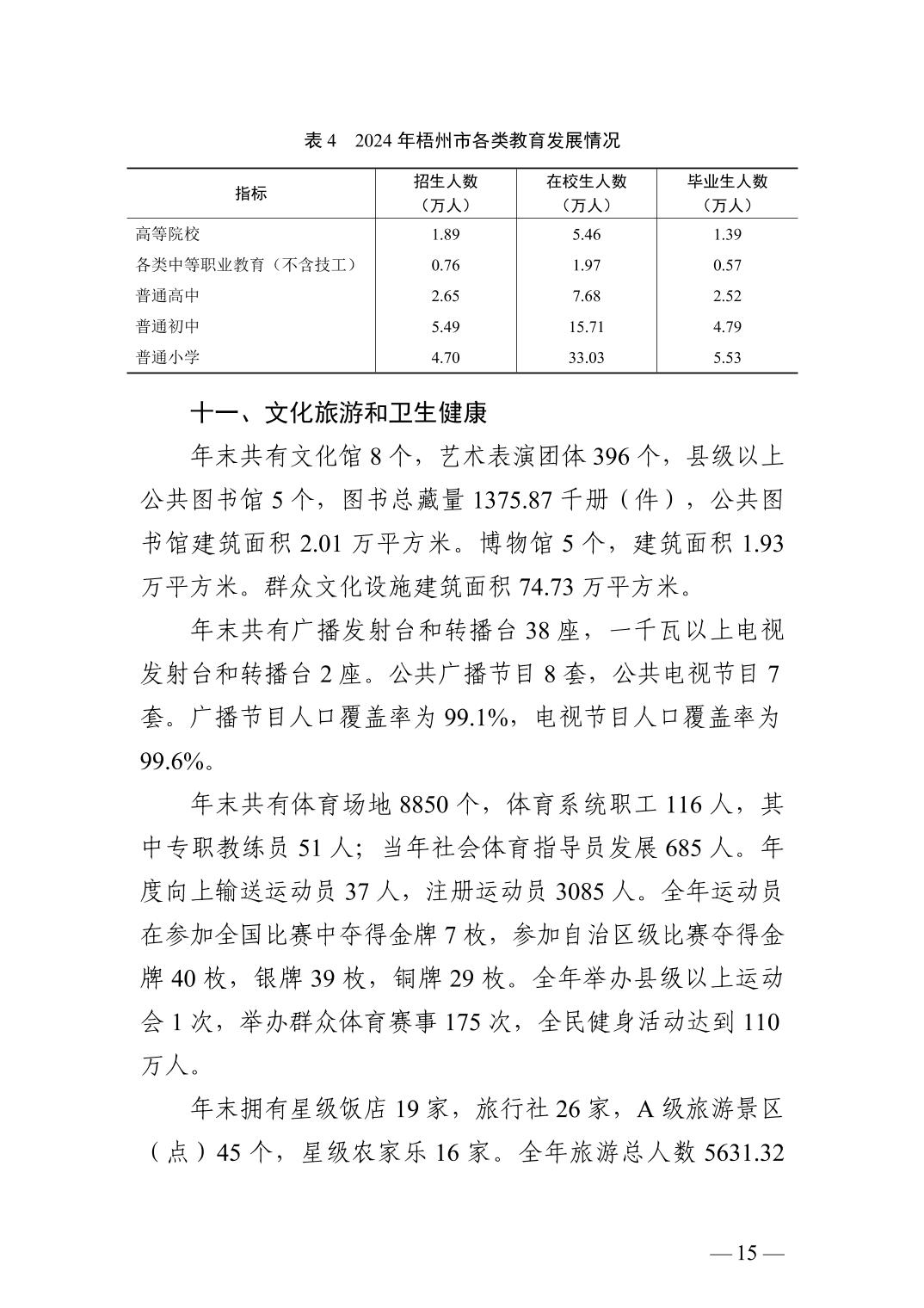 2024年廣西壯族自治區(qū)梧州市人民政府國民經(jīng)濟(jì)和社會(huì)發(fā)展統(tǒng)計(jì)公報(bào)(2025年更新)