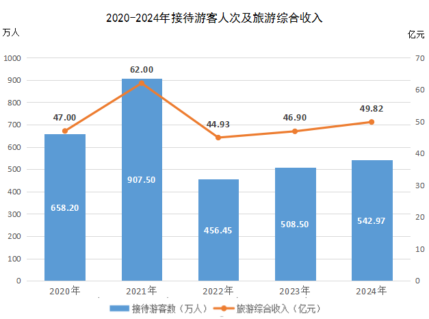 全年接待各類游客542.97萬(wàn)人次,同比增長(zhǎng)6.8%,旅游綜合性收入49.82億元,同比增長(zhǎng)6.1%。