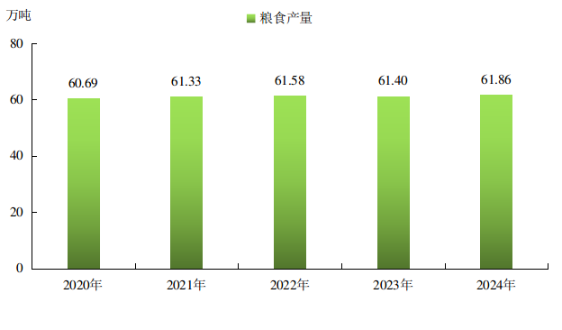 全年糧食總產(chǎn)量61.86萬噸,比上年增加0.45萬噸,增長0.7%。其中,春收糧食產(chǎn)量0.48萬噸,增長4.4%;早稻產(chǎn)量27.33萬噸,增長0.8%;秋收糧食產(chǎn)量28.49萬噸,增長0.5%。全年谷物產(chǎn)量58.67萬噸,增長0.7%。其中,稻谷產(chǎn)量51.61萬噸,增長0.7%;玉米產(chǎn)量7.04萬噸,增長1.2%。