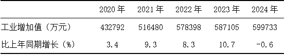 表二? 2020-2024年工業(yè)增加值和增長速度