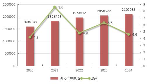 圖一 ????2020-2024年地區(qū)生產(chǎn)總值和增長速度