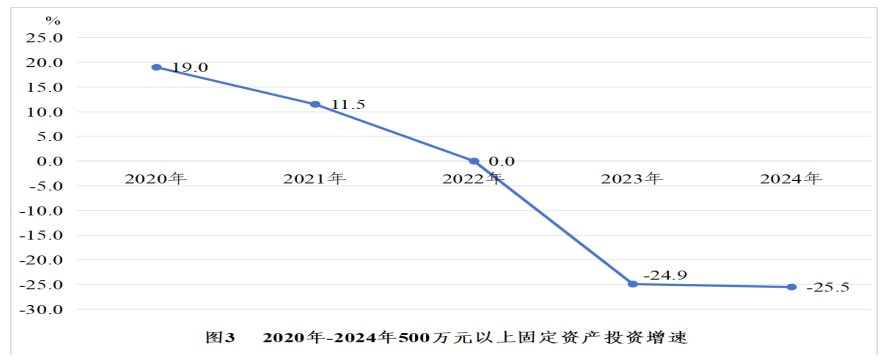 2024年,全縣500萬元以上固定資產(chǎn)投資比上年同期下降25.5%,其中:第一產(chǎn)業(yè)投資比上年同期增長77.5%,第二產(chǎn)業(yè)投資比上年同期下降2.6%,第三產(chǎn)業(yè)投資比上年同期下降23.3%,工業(yè)投資比上年同期下降2.6%,產(chǎn)業(yè)投資占固定資產(chǎn)投資比重29.5%。商品房銷售面積比上年同期下降33.2%。商品房銷售額比上年同期下降41.1%。