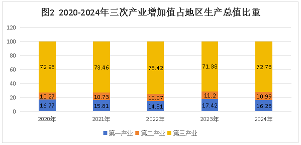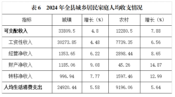 按常住人口計(jì)算,全縣人均地區(qū)生產(chǎn)總值30003.95元,同比增長6.57%。三次結(jié)構(gòu)占比由2023年的17.42:11.20:71.38調(diào)整為16.28:10.99:72.73。第一產(chǎn)業(yè)比重下調(diào)1.14個(gè)百分點(diǎn),第二產(chǎn)業(yè)下調(diào)0.21個(gè)百分點(diǎn),第三產(chǎn)業(yè)上調(diào)1.35個(gè)百分點(diǎn)。