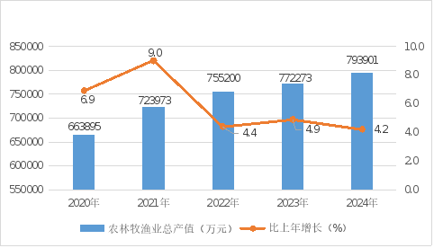 圖3? 2020—2024年農(nóng)林牧漁業(yè)總產(chǎn)值及其增長速度報告模板_工作報告_規(guī)劃綱要