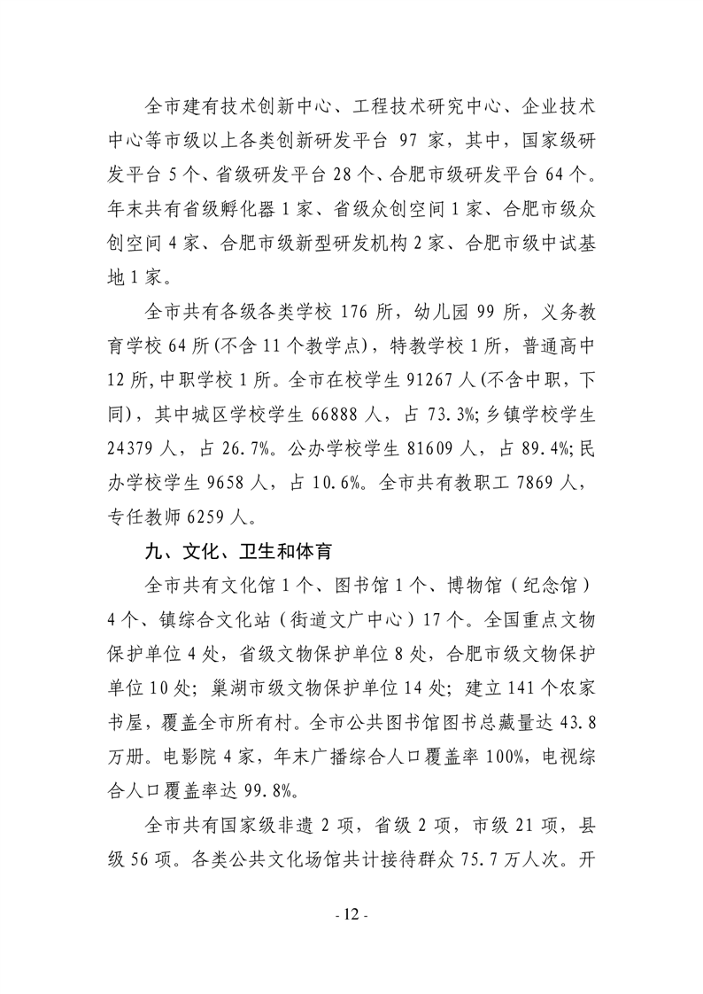 2024年合肥市巢湖市人民政府國民經(jīng)濟和社會發(fā)展統(tǒng)計公報(2025年更新)