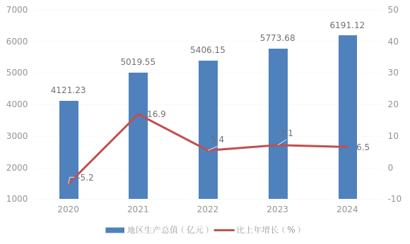 圖1 2020-2024年全市地區(qū)生產(chǎn)總值及其增速
