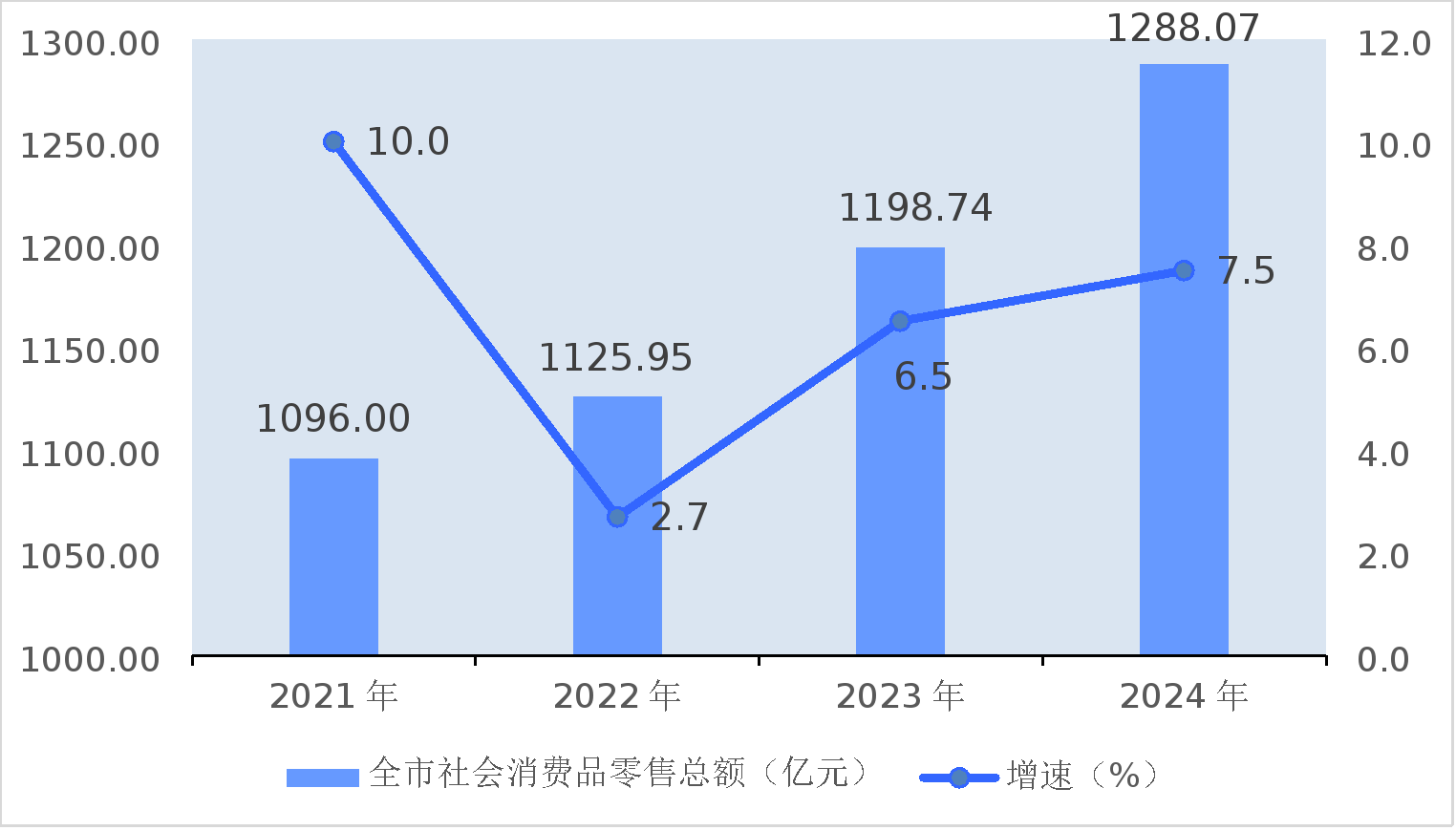 圖7??2021-2024年全市社會(huì)消費(fèi)品零售總額及其增速