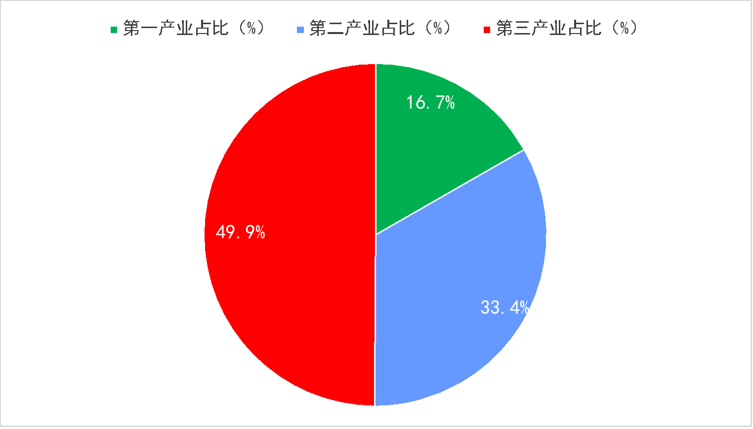 初步核算,全年全市地區(qū)生產(chǎn)總值3342.70億元,比上年增長(zhǎng)6.1%。其中,第一產(chǎn)業(yè)增加值557.81億元,增長(zhǎng)3.4%;第二產(chǎn)業(yè)增加值1116.00億元,增長(zhǎng)7.4%;第三產(chǎn)業(yè)增加值1668.89億元,增長(zhǎng)6.2%。第一產(chǎn)業(yè)增加值占全市生產(chǎn)總值比重為16.7%,第二產(chǎn)業(yè)增加值比重為33.4%,第三產(chǎn)業(yè)增加值比重為49.9%。