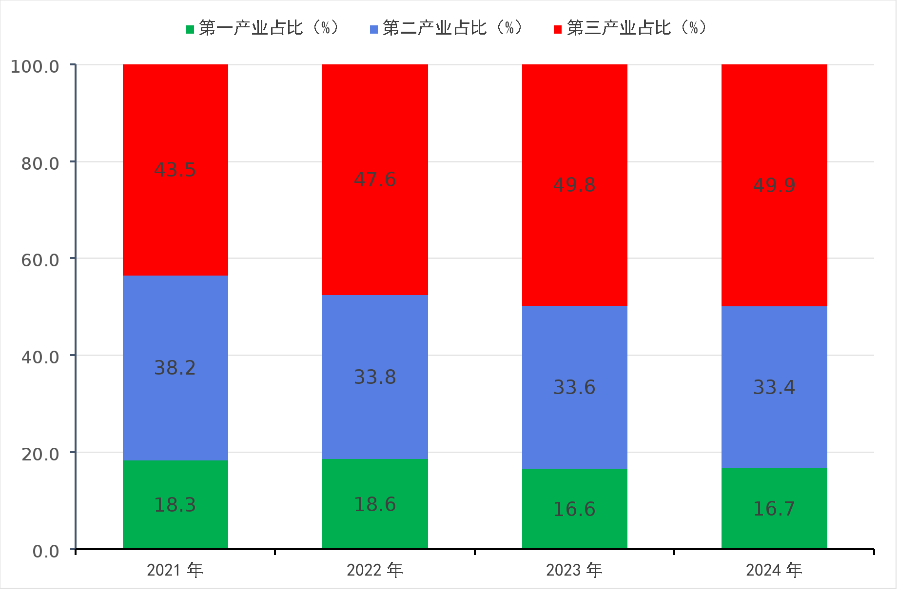 圖1??2021-2024年全市三次產(chǎn)業(yè)增加值占生產(chǎn)總值比重