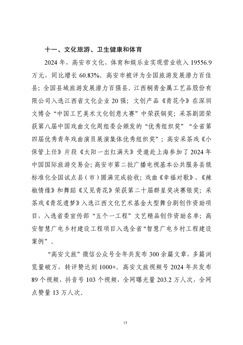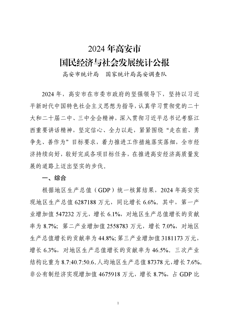 2024年宜春市高安市人民政府國民經(jīng)濟(jì)和社會發(fā)展統(tǒng)計公報(2025年更新)