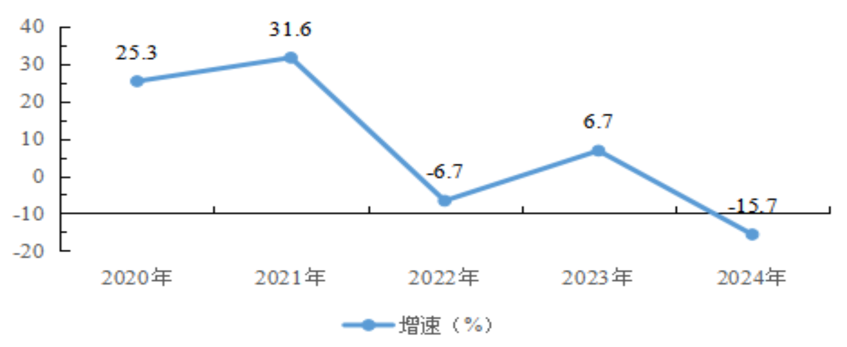 圖4?? 2020-2024年合山市規(guī)模以上工業(yè)總產(chǎn)值增速
