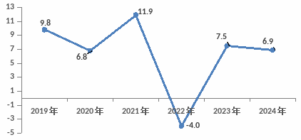 圖5 2019—2024年全市全社會(huì)固定資產(chǎn)投資同比增長(zhǎng)(%)