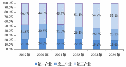 圖2 2019—2024年三次產(chǎn)業(yè)增加值占GDP比重