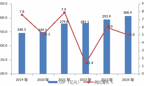 圖1 2019—2024年全市GDP總量及可比價(jià)增速