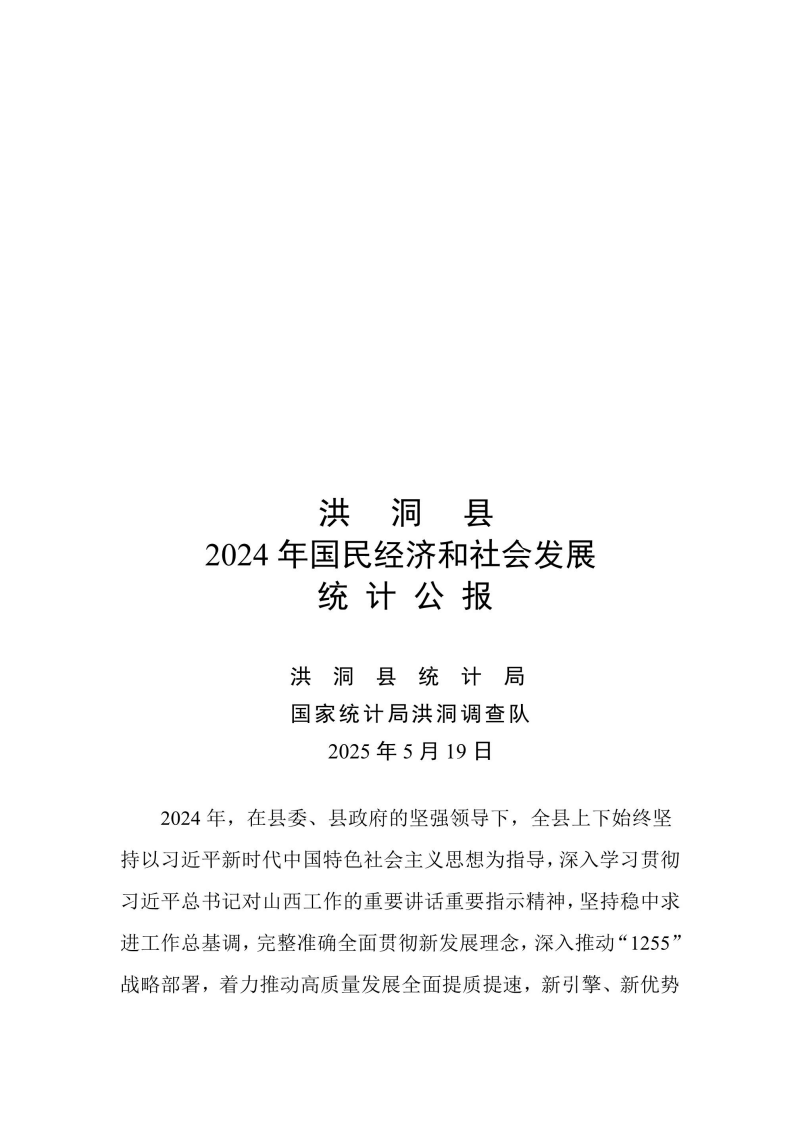 2024年臨汾市洪洞縣人民政府國民經(jīng)濟(jì)和社會(huì)發(fā)展統(tǒng)計(jì)公報(bào)(2025年更新)