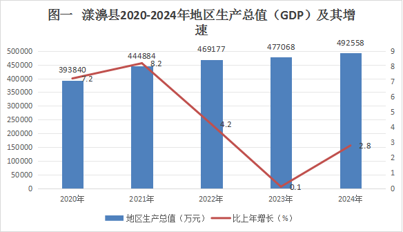 經(jīng)初步核算,2024年全縣地區(qū)生產(chǎn)總值(GDP)完成492558萬元,按2020年不變價(jià)格計(jì)算,同比增長2.8%,其中:第一產(chǎn)業(yè)增加值148706萬元,同比增長2.7%;第二產(chǎn)業(yè)增加值80631萬元,同比增長-0.4%;第三產(chǎn)業(yè)增加值263221萬元,同比增長4%。三次產(chǎn)業(yè)結(jié)構(gòu)為30.2:16.4:53.4。第二產(chǎn)業(yè)中工業(yè)實(shí)現(xiàn)增加值62539萬元,同比增長5.1%;建筑業(yè)實(shí)現(xiàn)增加值18133萬元,同比增長-19.6%。2024年人均地區(qū)生產(chǎn)總值(GDP)為51122元,同比增長3.2%。