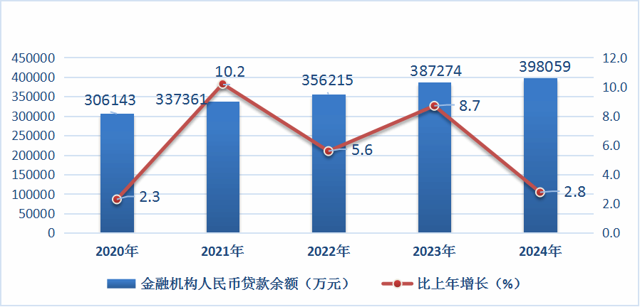 圖9 2020—2024年滄源縣金融機構(gòu)人民幣貸款余額及增長速度
